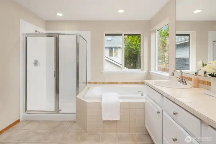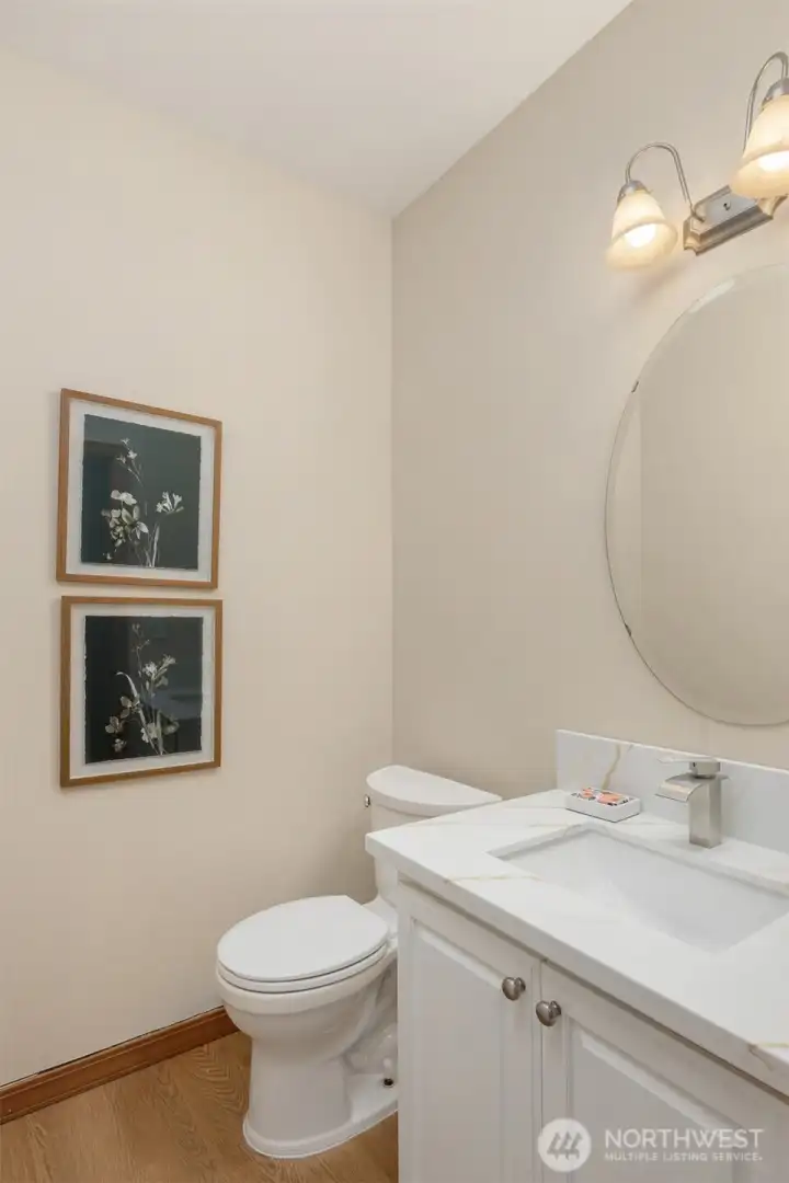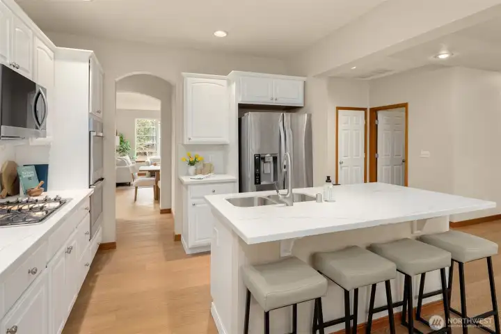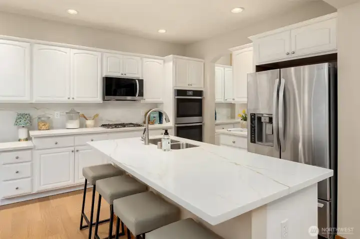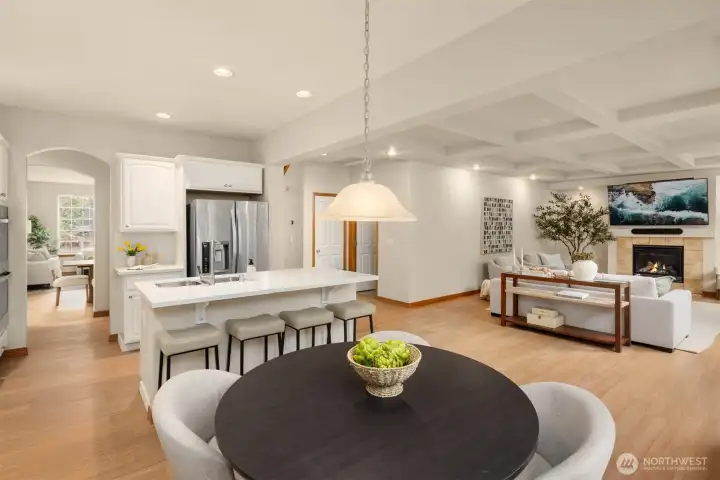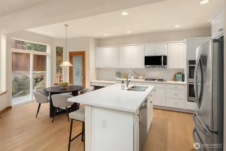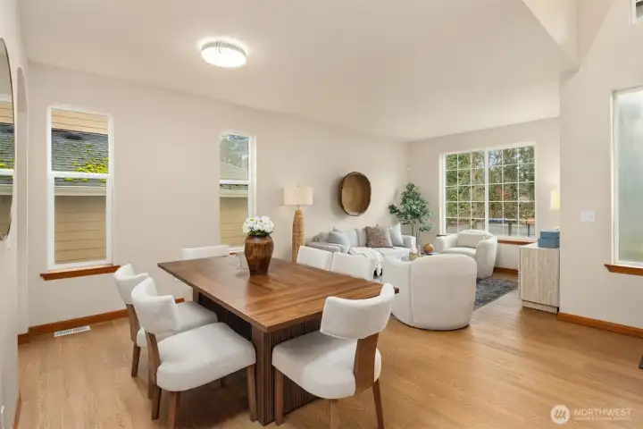 Elegance Redefined: Your Sanctuary of Modern Comfort Awaits. Imagine coming home to this beautifully refreshed four-bedroom residence in Woodlark Green, where comfort and convenience meet. Fresh paint, stylish LPV flooring, and updated lighting and plumbing fixtures create a bright, welcoming atmosphere for everyday living or entertaining. The kitchen features gleaming quartz counters, a new cooktop, and microwave for easy meal prep. Take a peaceful stroll through the neighborhood or visit the playground across the street. With quick access to downtown Woodinville, wineries, and freeways, this home perfectly balances suburban tranquility and city connection—ready for you to make it your own.