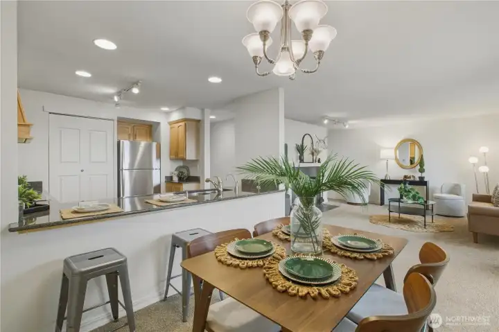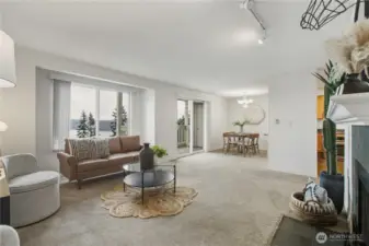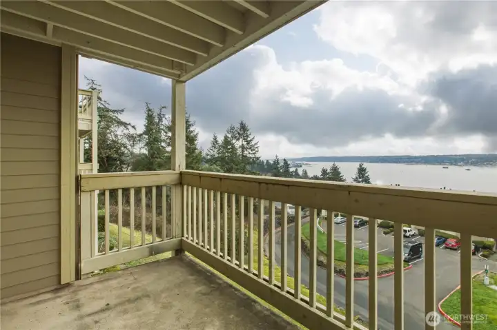 Breathtaking water views with true level entry—no stairs to climb! This light-filled 2BR condo offers effortless, single-level living with sweeping views of Sinclair Inlet from the living room, dining area, kitchen, and private balcony. Cozy up by the fireplace or enjoy the extra-spacious kitchen featuring granite countertops, shaker-style wood cabinetry, stainless steel appliances, and an eating bar—perfect for entertaining or everyday comfort. Perfectly positioned in the community for optimal views & quiet enjoyment. The generous primary bedroom and oversized bath with a double-wide walk-in shower provide ease and accessibility. Ample storage, full-size stacked washer/dryer, and parking included. Low HOA dues cover W/S/G and more. Enjoy resort-style amenities including pool, spa, fitness center, tennis courts, dog park, clubhouse, and guest parking. Ideally located minutes to Downtown Bremerton, ferry, parks, and just a short commute to Naval Base Kitsap—an exceptional opportunity for military members or anyone seeking low-maintenance waterfront adjacent living.