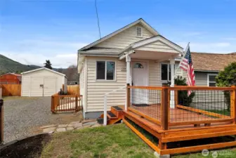 Welcome to this light & bright affordable home. This charming and cute home has been updated and is ready for a first time home buyer or investor. Enjoy the views of the river from the front porch and the living room, along with so much natural lighting. The kitchen has a nice backsplash, newer appliances, new paint and is very functional. This home is small but well thought out and has great use of space. Enter the finished basement from the living room with new flooring & stairs. Low-maintenance vinyl exterior siding. The fully fenced backyard with a trex deck that leads to a charming private pergola is perfect for enjoying Saddlerock views. Detached garage with new work/craft bench. Close to hospital, shopping & dining.