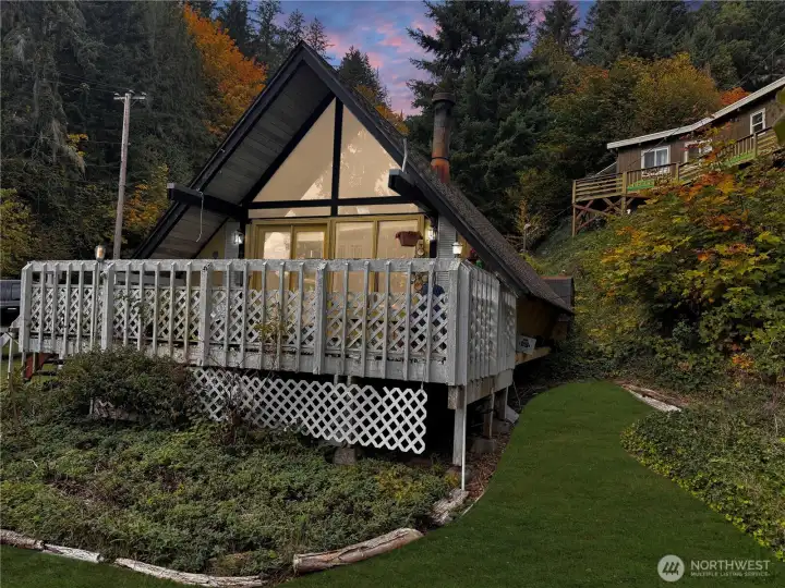 Escape to your own Hood Canal hideaway! perfectly set among the trees, this cozy lofted cabin overlooks the sparkling waters of Hood Canal — where eagles soar and salt air drifts through the evergreens. Spend your days kayaking, crabbing, or simply watching the tides roll in from your spacious entertaining deck. When evening comes, warm up by the wood stove and enjoy the craftsmanship of custom wood cabinetry and charming rustic details throughout. Just a short stroll to the community’s private beach, you’ll have access to 185 ft of pristine shoreline, a dock, boat launch, restrooms, and a cabana. This is the quintessential Pacific Northwest retreat — peaceful, beautiful, and ready for your next adventures. Easy showings call today!