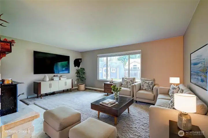 Spacious Rambler in Totem Park on a shy 1/4-acre lot with room to grow! Beautifully updated throughout with Formal Living & Dining rooms. Wood Burning Floor to Ceiling Brick Fireplace with Hearth accents the center of the home. New Kitchen with SS Appliances, Laminate Floors, Nook and Pantry opens to the Family Room with Slider out to the Back Yard and Patio. Primary Suite includes 3/4 Bath and Walk-in Closet. Other Amenities include Heat Pump W/ AC, Vinyl Windows, New Electrical Panel, Insulated Garage Door and all Appliances Stay!! Large yard with Shed and Plenty of Parking including RV. Excellent location minutes to Shopping, I-5 & Hwy 9! Don't miss this one, No HOA and priced to sell!