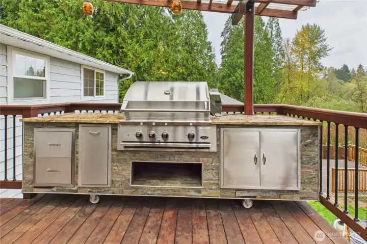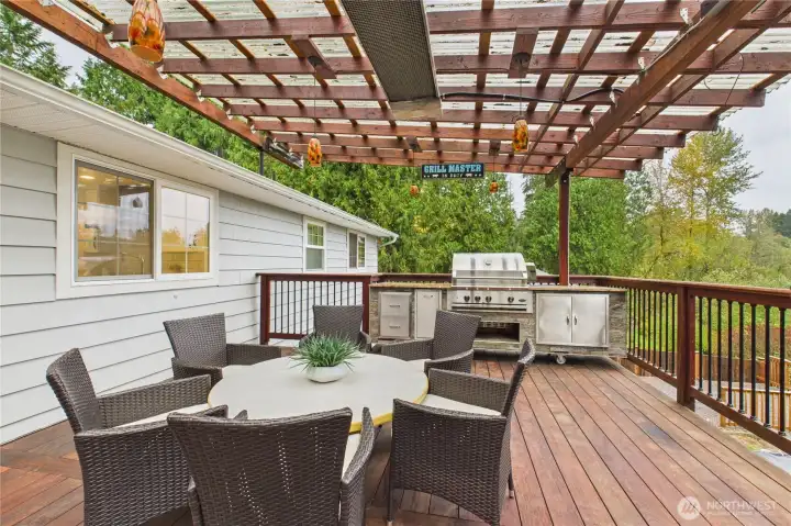 Tucked away on nearly half an acre, this 5-bd, 3 shower Woodinville retreat blends modern comfort with peaceful living. The home offers an updated kitchen with quartz countertops and stainless-steel appliances, upgraded bathrooms with high-end fixtures, towel warmer rack, heated floors on the first floor, a newer roof & a tankless water heater.. The daylight basement adds versatile space for guests or work. Outside, enjoy two newer decks with outdoor Kitchen BBQ Grill station, a work shed, chicken coop & a spacious yard. With highly rated Northshore School District, RV parking & easy access to parks, trails & downtown Woodinville, this home perfectly combines comfort, style, and serenity.