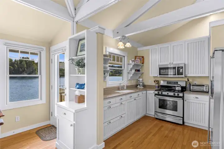 Enjoy 118' of private no-bank waterfront in the welcoming Keyport community! Mortgage savings may be available for buyers of this listing! Watch seals play and take in bay views from nearly every room in this 2-bed, 2.5-bath home with a flexible bonus room—perfect for guests, a den, or a creative studio. Some features include: oak floors, radiant heat, 2 wood-burning fireplaces, stainless steel appliances. Entertain your guests from your expansive deck, 2 patios, or covered gazebo. Keep your tools tidy in the garden shed. Live on one-level with guest space below. Fruit trees, RV hookup, and an oversized 2-car garage with attached carport. Conveniently located near shopping, amenities, ferries, and the naval base. Your new life starts here!