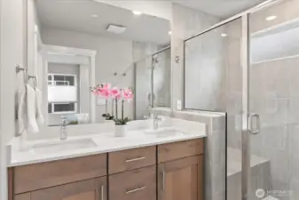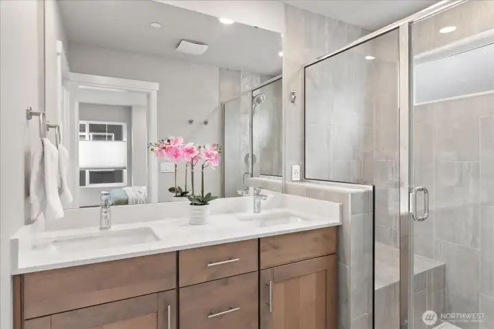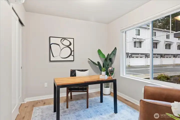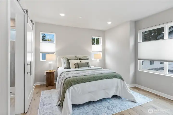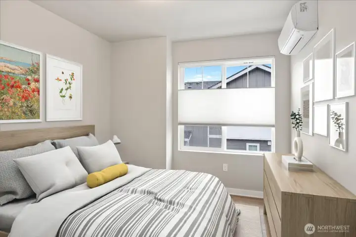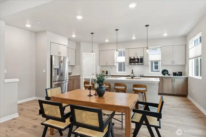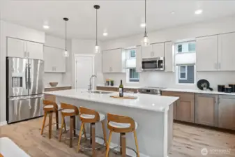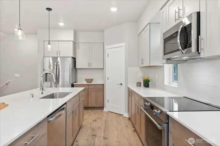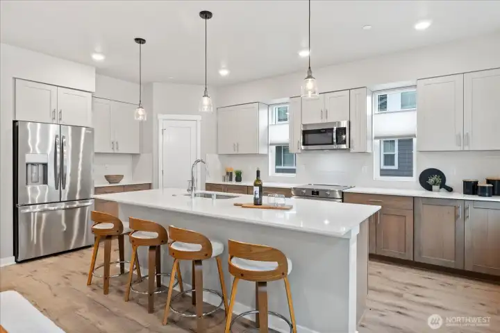 Step into this spacious, light-filled home where modern style meets everyday functionality. The entertainer’s kitchen features a large island perfect for gatherings, shaker-style soft-close cabinetry, quartz counters, a full-height backsplash, and ample storage. Relax by the electric fireplace with a custom mantel or retreat to the stunning primary suite with a spa-inspired bath and walk-in closet. Enjoy quartz surfaces and LVP flooring throughout, upgraded up/down cellular shades, and mini-splits for efficient comfort. Outdoor living shines with a deck and built-in heater, plus EV charger, garage shelving, and upgraded appliances. Easy commuter access, close to shopping, dining, and trails, refined, contemporary living at its best.