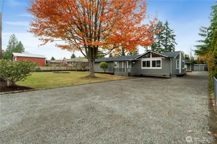 Step into your dream home—where modern style meets peaceful living! This fully remodeled 3-bedroom, 2-bath rambler shines with fresh interior and exterior paint, a brand-new roof, luxury vinyl plank flooring, and plush carpet. The bright, spa-like bathrooms and stunning kitchen with quartz countertops, stainless steel appliances, and plenty of cabinet space create the perfect mix of comfort and function. Enjoy the huge, flat lot with room to play or expand, plus a covered back deck that adds the perfect outdoor living space. The unfinished ADU is ready to become your rental, guest suite, or creative escape. With a 1-car garage, large outbuildings, RV parking, and a quiet dead-end street with no HOA, this home offers endless possibilities.