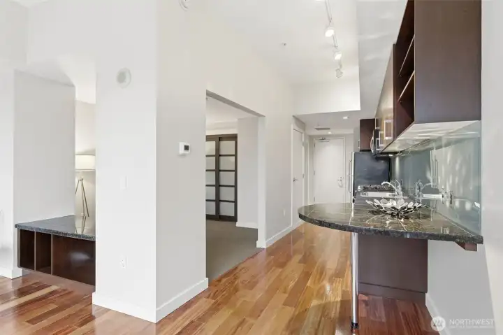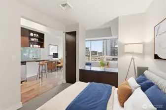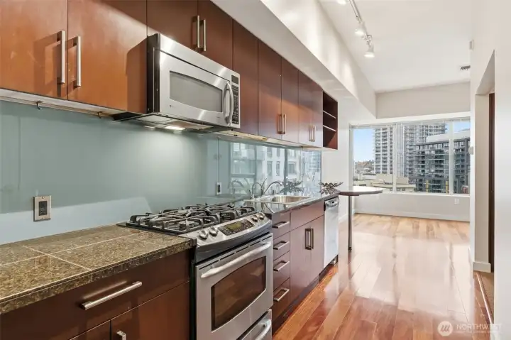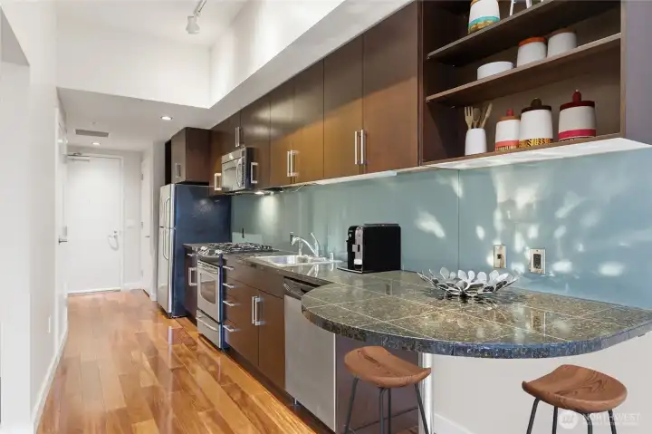 South lake Union Living at its Finest! Beautiful cherry floors welcome you into this bright space w/open layout. Kitchen features stainless steel appliances, gas cooking and ample counter space w/eating bar. Central A/C with New heat pump, New paint, New W/D. Secure ELECTRIC VEHICLE Parking & Storage Included. Life at 2200 Westlake Condominiums is destination living. The property features the ultimate in convenience with its built in mix of Whole Foods grocery, luxury hotel, banking & shopping, just blocks to the Seattle Center, Lake Union, & myriad options for Dining and Entertainment. 100 walk score! Upscale amenities: concierge, fitness center, sauna, roof deck, theater, game room, guest suite, package hub, party room, & conference room.