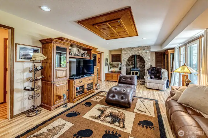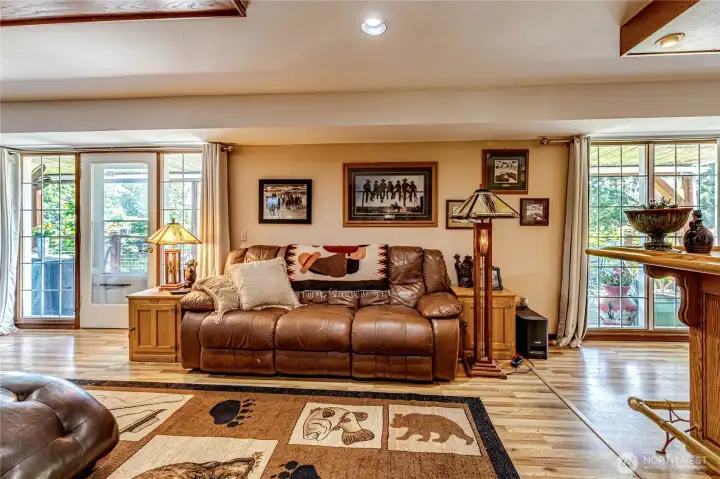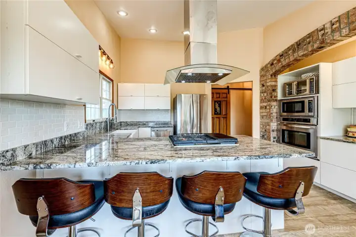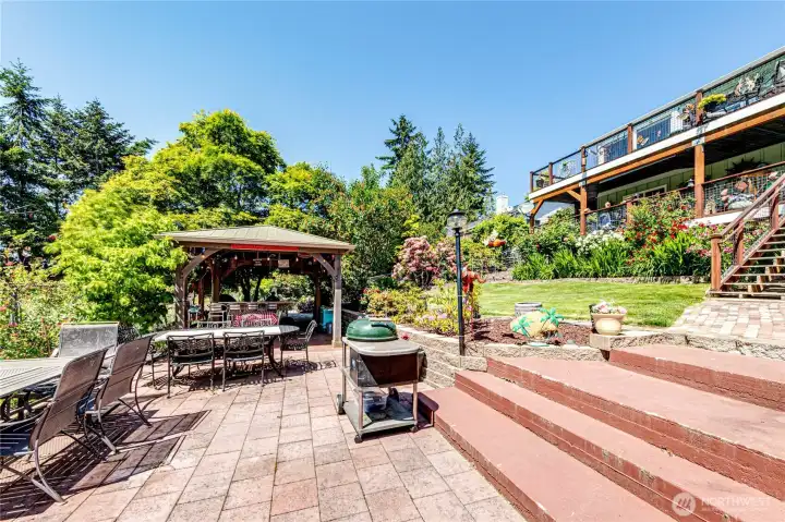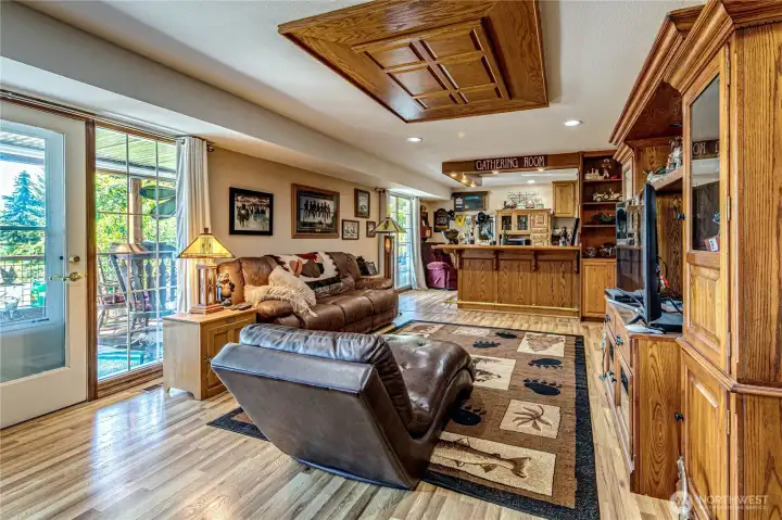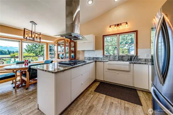 Back on Market at Reduced Price! Beautifully maintained home with unobstructed mountain views. Kitchen is equipped with granite countertops, soft close cabinets and high-end stainless-steel appliances. Hard surface floors run throughout the home. Vaulted ceilings. Primary bedroom offers a luxury ensuite w/large soaking tub and custom tile shower. Deck spans the entire back of home. Lower level has family room, 2nd kitchen with custom wet bar, large bedroom, 2 bathrooms and an office—perfect for a guest suite or potential in-law setup. Covered deck off family room leads into beautifully landscaped and fenced backyard featuring a large patio, outdoor kitchen area, gazebo. Private trail leading to river with access only for this neighborhood.
