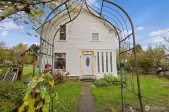 Own a piece of Bow’s history with this charming Victorian beauty on a corner lot! Tall ceilings, original hardwood floors, and oversized new vinyl windows fill the home with natural light. Artistic stained-glass and mosaic details add character throughout. Featuring three bedrooms, two baths, multiple bonus rooms, and enclosed front and back porches, this home blends classic elegance with everyday comfort. A wrought-iron fence, fruit trees, and ornate exterior accents enhance its timeless appeal. Many materials are on site to complete unfinished projects—instant equity! ICF foundation added in 2010 to the entire home. Not in a flood zone!