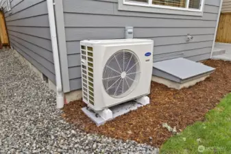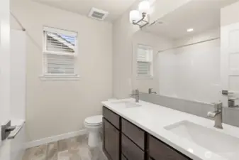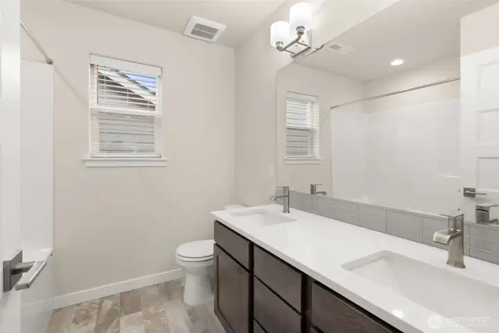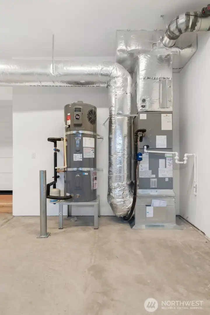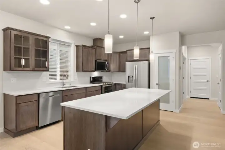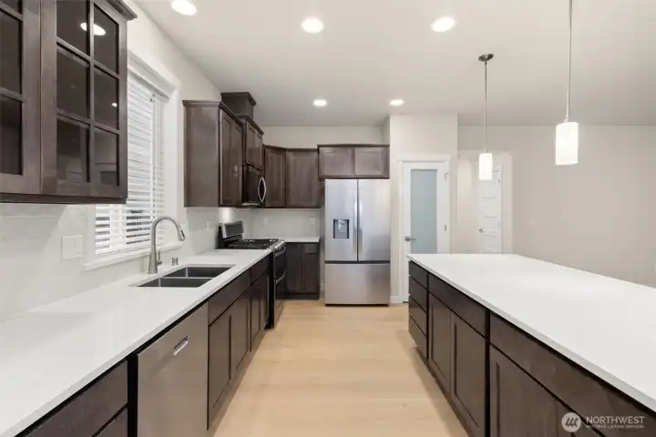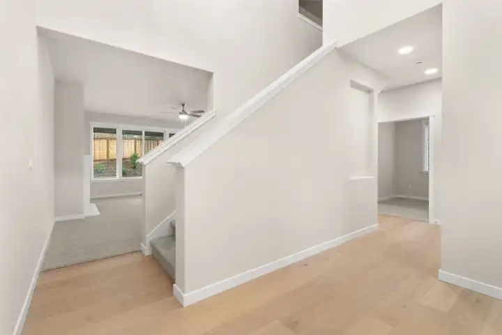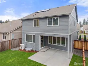 The Noble in the Rob Rice Homes community of Bradbury, offers 4 bedrooms & 2.5 baths. Enjoy contemporary details like, hardwood flooring, quartz counters & graphite-stained maple cabinets throughout w/full extension guides & soft closure drawers + stainless-steel appliances, including refrigerator! Washer and dryer and window blinds are included too! Primary 5-piece bathroom w/tile flooring and free-standing tub. New energy-efficient features include high-efficiency variable stage heat pump providing both heat & air-conditioning, solar panels & an electric hybrid water heater. Landscaped front & back w/backyard fully fenced. Home backs up to open space! Home is complete and move-in ready!