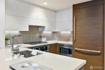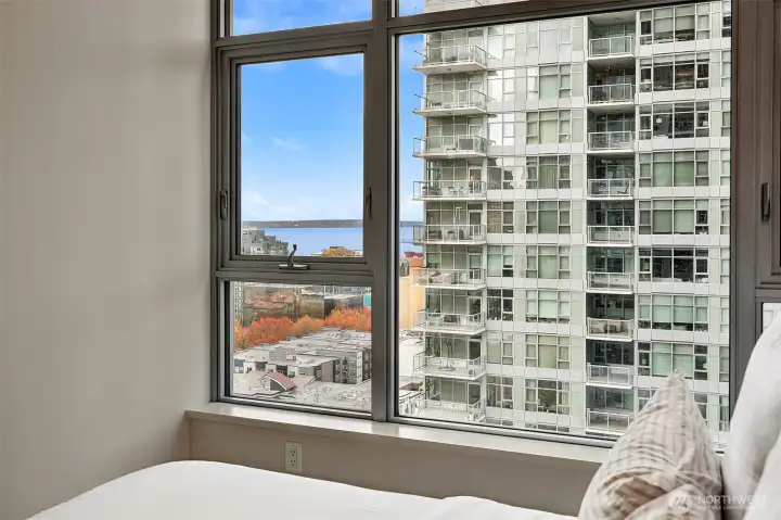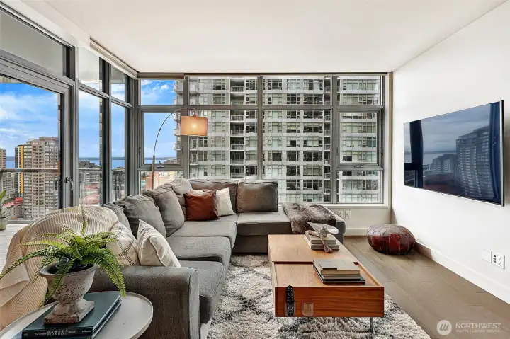 Insignia welcomes you to this beautiful modern high-rise residence w/ spectacular northerly views overlooking the city, Puget Sound & Lk Union. Chef’s kitchen showcases Quartz counters, sleek cabinets, Bosch & Thermador appliances & substantial pantry storage. Open-concept dining & living space lead to a private covered deck. Floor-to-ceiling windows with motorized shades & A/C offer exceptional light, privacy & comfort. Inclusive luxuries incl- 41st-floor Sky Retreat, 24-hour concierge, pool/spa/sauna/steam, yoga/pilates studio, rooftop BBQ terrace, Sky Lounge & private theater, 2-story fitness center, indoor pool/hot tub, pet spa w/ dog run & grooming station, park terrace, plus 2 EV parking spaces w/ storage. No rental cap. Heart of SLU!