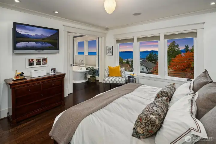 Ideally located on the hill this stunning traditional home showcases sweeping Puget Sound views & spectacular Olympic Mountain sunsets. A custom, architect-designed studs-out renovation honors period charm while adding modern luxury, abundant storage & comfort year-round with A/C. Enjoy three inviting living areas perfect for everyday relaxation & entertaining in style. Chef’s kitchen with Viking & Miele appliances, adjacent family room. Expansive primary suite showcases breathtaking views, a luxurious spa-inspired bath with view soaking tub & generous walk-in closet. Home automation system & home theater too! Great outdoor entertaining space. Walk to the Queen Anne shops, restaurants or Seattle Center. This is Seattle living at its finest!