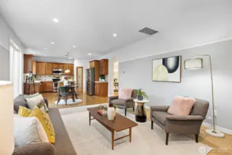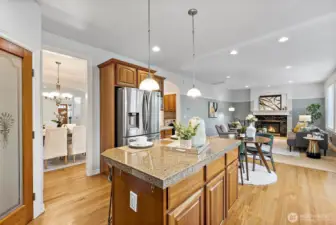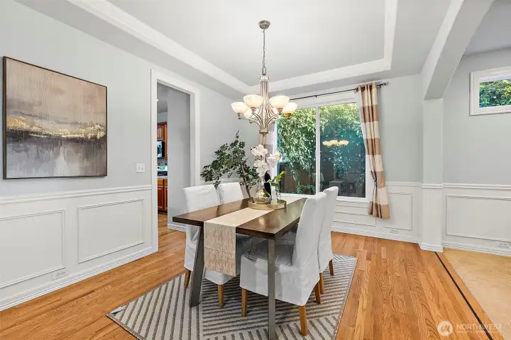 Welcome to this impeccable Kingsley Glen home in Kent. Tucked away in a quiet cul-de-sac, this 5-bedroom, 2.5-bath, 3,070 sq ft gem offers extensive space, including a large 5th bedroom suitable for a bonus or media room. Features include hardwood floors, coffered ceilings, wainscoting, and a gourmet kitchen with cherry cabinets, granite-tile island, and stainless appliances. A dedicated office, spa-style primary suite with dual walk-in closets, detached 8'×16' workshop, 3-car garage, A/C, fresh paint, and generator hookup add comfort and functionality. The home is pre-inspected for peace of mind. Convenient location near parks, trails, Lake Meridian, shopping, dining, and commuter routes. Move-in ready with quick occupancy.