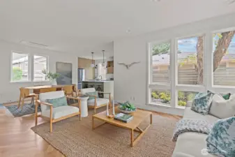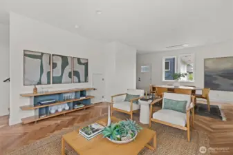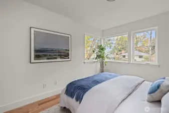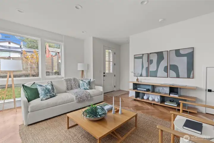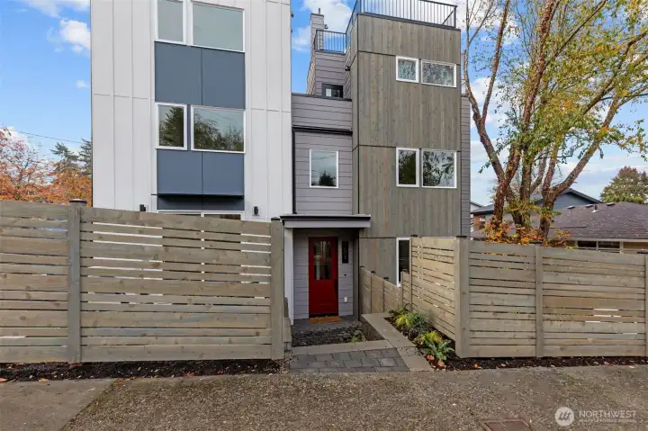 Modern coastal architecture meets refined craftsmanship in this brand-new 4-bed, 2.5-bath home offering sweeping water views and elevated comfort at every turn. Sun-filled interiors showcase real white-oak hardwood floors, locally made Belmont cabinetry, quartz counters, induction range, and designer lighting. The spa-inspired primary suite features heated tile floors, soaking tub, dual vanity, and private deck overlooking Puget Sound. No-carpet living, high-efficiency HVAC and hot-water systems engineered for Northwest winters, a fully fenced private yard, rooftop deck, and off-street parking combine luxury with sustainability. A rare blend of performance, design, and lifestyle just minutes from Lincoln Park, cafés, and waterfront trails.