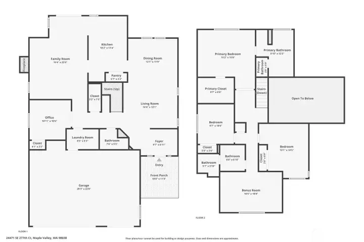 Immaculately cared-for Maple Woods home tucked in a friendly cul-de-sac, where natural light fills the open spaces and soaring ceilings with wide plank hardwoods welcome you in. The main level offers a flexible office or guest room, spacious living and dining areas, and a cozy family room with a gas fireplace. The kitchen features a sunny breakfast nook and granite tile counters. Upstairs, the primary suite boasts a luxurious 5-piece bath, plus a bonus room and two comfortable bedrooms. Enjoy coffee on the blue flagstone patio overlooking a private, fenced backyard with peaceful greenbelt views. Recent updates include a new roof, gutters, furnace, A/C, water heater, and cedar fencing. Award-winning Tahoma Schools!