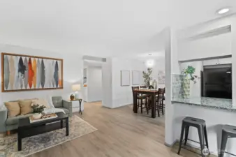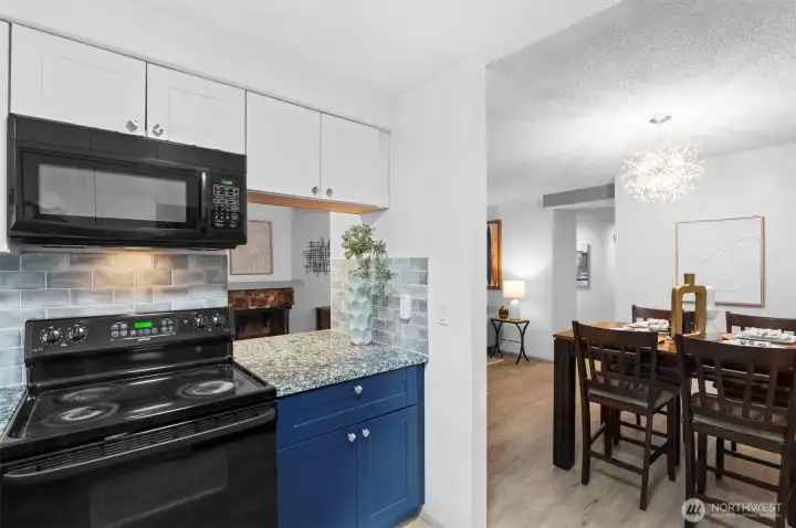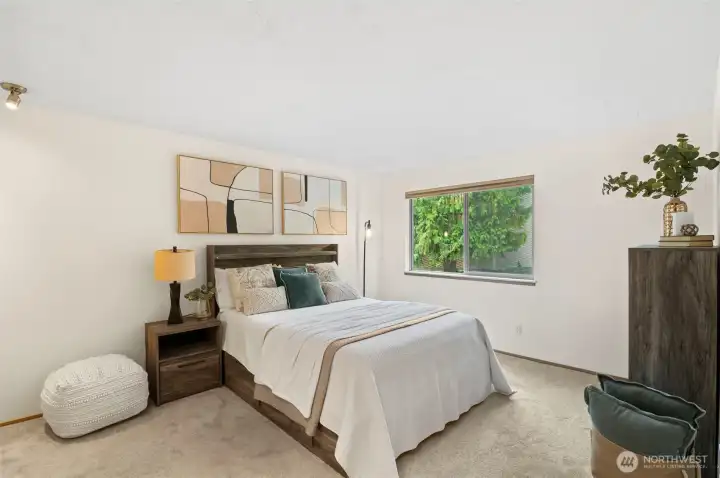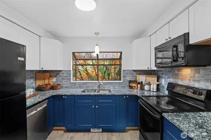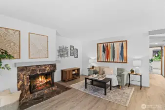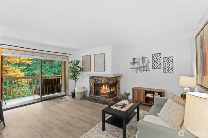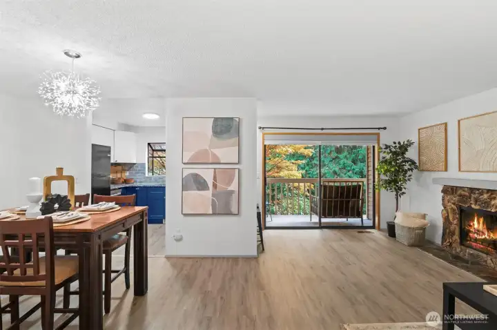 Welcome to this charming home in a highly desirable Kirkland location. This thoughtfully updated unit includes 2 bedrooms, 1 full bath, and abundant natural light. Open concept layout features updated kitchen with new granite countertops, new backsplash, new paint, and breakfast bar flowing into the dining and living area with cozy fireplace. Enjoy the private patio with storage that opens to a peaceful greenbelt and stream. Personal carport below the home includes extra large storage unit. Pet friendly with no rental cap. Minutes to Juanita Beach Park, Restaurants, Totem Lake, Google, I-405, & award winning Lake Washington schools. Pre-inspected and move-in ready!