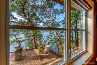 WEST-FACING WATERFRONT HOME IN ROSARIO Designed by Vandervort Architects and built by Burke Thomas of Woodsong. This contemporary 2,367± sq ft home blends simple elegance with quality craftsmanship. Exquisite lighting highlights clean architectural lines, while sunlight and serene water views fill the open-concept living area, creating a seamless connection to nature. A striking handcrafted wood-and-steel staircase leads to a lofted office/guest retreat. The lower level offers two bedrooms, a spacious bath with jetted tub, and a laundry/utility room. Conveniently located near Rosario Resort, Moran State Park, and minutes from Eastsound, this turnkey home is offered fully furnished (with a few exclusions) for an effortless island lifestyle.