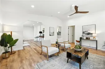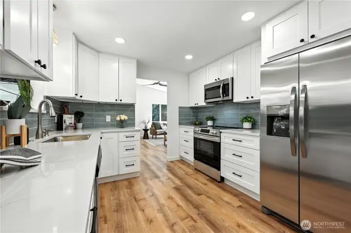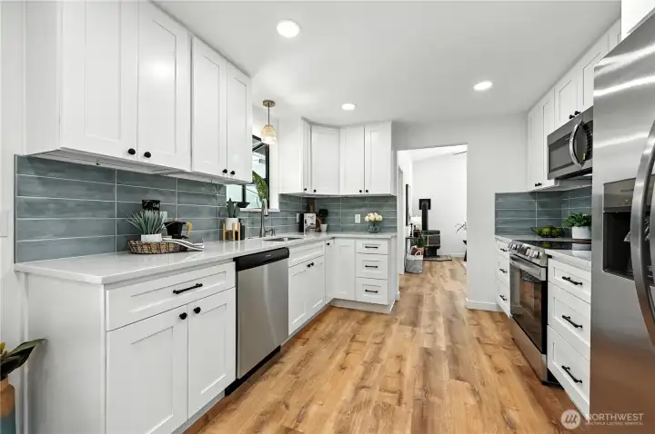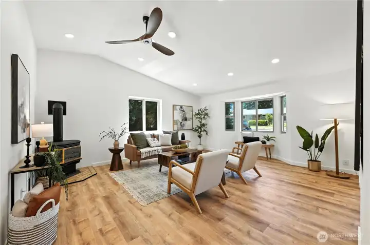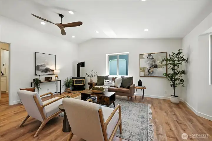 Welcome to your newly updated home with a HUGE shop! Sitting just shy of a .25 acre lot in a peaceful and quiet neighborhood. Home features fully updated kitchen, bathrooms, appliances, 30yr roof, ext/int paint, flooring, and electrical panel! Enjoy vaulted ceilings with tons of natural daylight. Main floor offers primary bedroom, 2 additional bedrooms, a full tiled bath, kitchen, dining area, living room, laundry, an extra 3/4 bath, and a 2nd living area with gas fireplace. Newer furnace on site. Enjoy the massive 24' x 28' shop for your RV, boat, cars, and toys! Bonus 11' x 26' garage bay for added storage. Come see this home today!