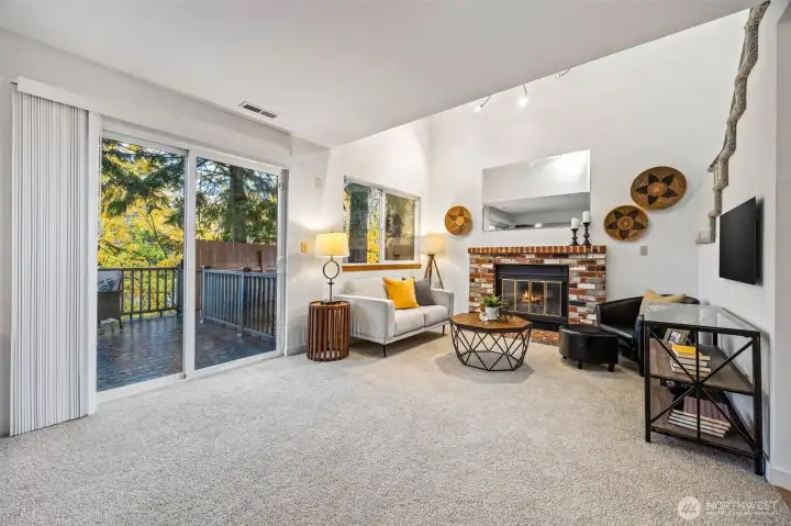 Wonderful Victoria Park home residing on a beautiful setting in a quiet cu-de-sac. Brand new flooring throughout and fresh paint on the main floor provides an air of newness! Roomy and well-appointed kitchen opens to a cozy family room offering plenty of natural light, vaulted ceilings and wood burning fireplace. Large primary bedroom with vaulted ceilings and its own ensuite and walk-in closet. Enjoy the serene and private backyard while barbequing on the large Trex deck. Partially fenced backyard with plenty of room for a dog-run. Low maintenance and natural landscaping. Convenient attached two car garage. Vinyl energy windows throughout. Enjoy the community's private parks and trails! Secluded yet minutes from freeways & downtown Renton.