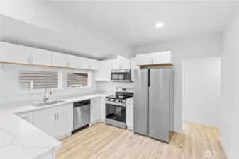 Charming and move-in ready, this beautifully updated 2 bedroom, 1.75 bath Tacoma home offers comfort and modern style. The property features extensive upgrades including brand-new electrical wiring and panel, new siding, new roof, and fresh interior and exterior paint. Inside, enjoy new LVP flooring, white shaker cabinets, quartz countertops, updated doors, and trim throughout. Both bathrooms have been tastefully renovated with tile finishes and white shaker vanities topped with quartz. An unfinished basement provides great additional storage space or potential future use. Conveniently located near shopping, dining, and commuter routes, this Tacoma home is an excellent opportunity you won’t want to miss.