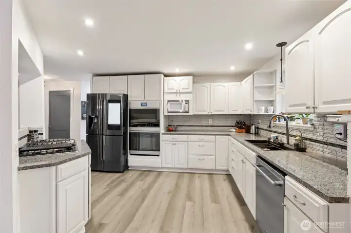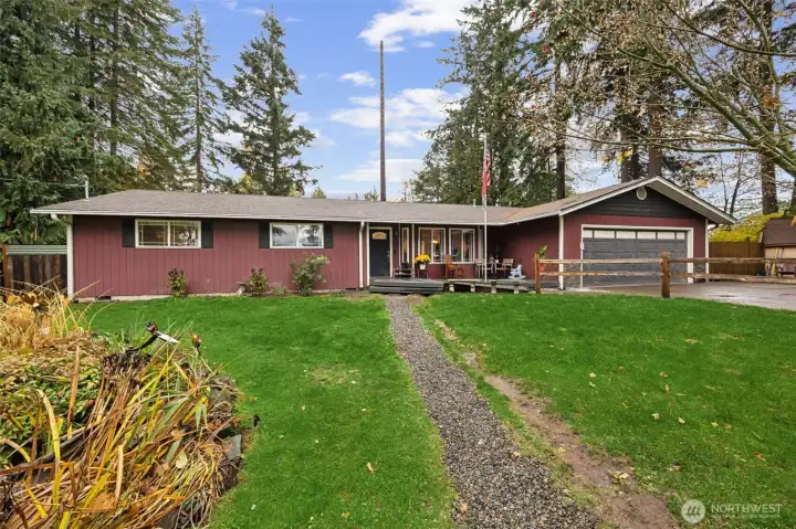 Lovely Rambler on just over 2+ acres in a peaceful, park-like setting with no HOA! This beautifully updated 3-bedroom, 2-bath home features an open floor plan, new LVP flooring, fresh interior & exterior paint, new furnace & AC, and a modern kitchen with quartz countertops, double oven and new stainless-steel appliances. The primary suite includes an updated ¾ bath. Enjoy the cozy family room with fireplace and a fantastic recreation room complete with hot tub and indoor swim spa—both stay! Outside offers an oversized 2-car garage, covered RV parking with 30-amp service, a pool, and ample extra parking. Close to schools and shopping—privacy and convenience await!