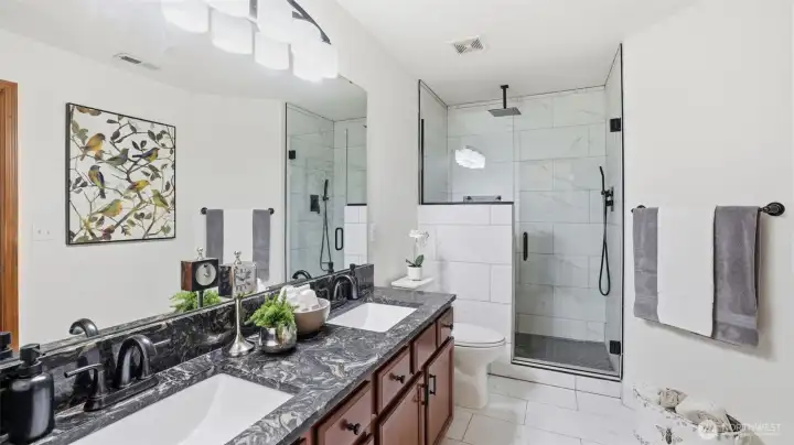 Turnkey & Beautifully Updated Home! Gorgeous 4-bdrm, 2.5-bath home w/ spacious loft/rec room, perfectly situated at the end of a quiet cul-de-sac. Open-concept main floor features a spacious great room & kitchen w/ granite slab countertops, eat up bar, gas range, & walk-in pantry. Enjoy hardwoods in entry & great room, new kitchen flooring, carpet, & fresh paint throughout. Vaulted primary suite offers a stunning remodeled bath & large walk-in closet. Step outside to your fully fenced backyard oasis, complete w/ deck, patio, low-maintenance landscaping & turf. Newer water heater (11/2023), roomy 3 car garage, & convenient guest parking. Excellent location near Boeing, I-5, I-405, & local park & ride options-minutes from shopping & dining!