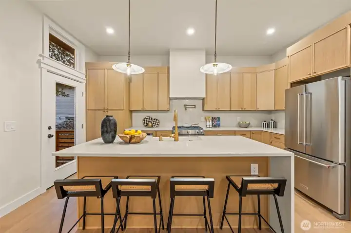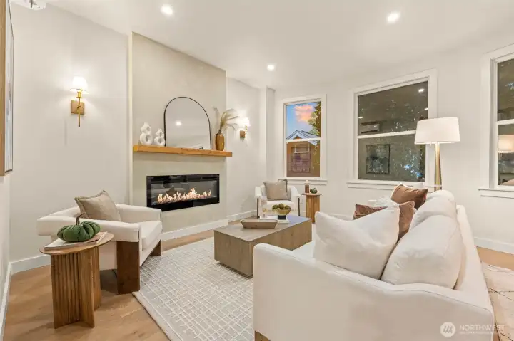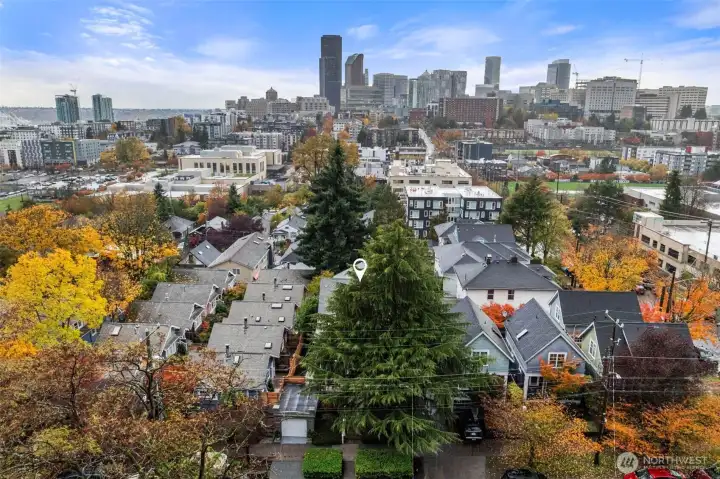 Perched in the heart of Central Seattle, this timeless 1903 craftsman captures sweeping views of the Seattle skyline and iconic Columbia Tower. A true work of art, where every detail tells a story. It blends historic character with modern comfort- fully permitted remodel includes: new engineered hardwoods, windows, siding, plumbing & electrical. Upstairs features three bedrooms, including a sunlit primary suite, plus a main-floor office that easily lives as a fifth bedroom. Walkout basement with secondary access and the start of a second kitchen offer endless opportunities for guests, rental income, or multi-generational living. W/ a 93 Walk Score & secured garage parking - this is where design, history & urban living converge.