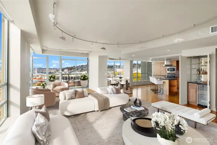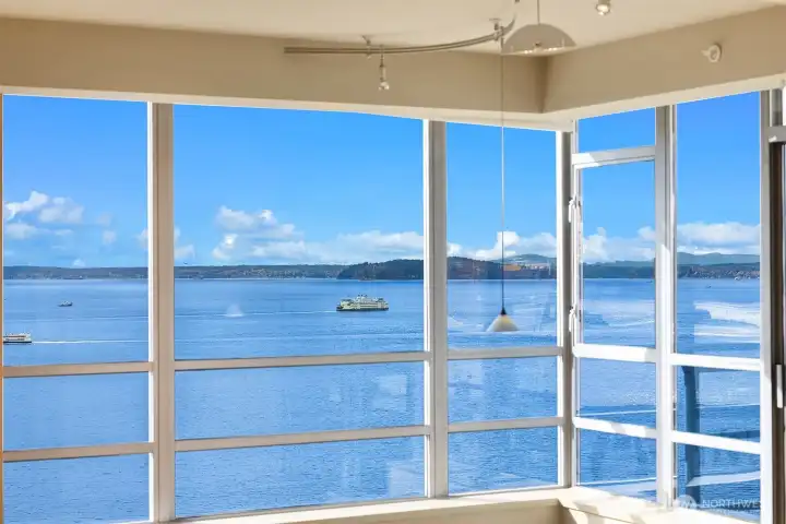 Commanding the prized NW corner, this remarkable residence impresses from the moment you arrive! Walls of glass frame jaw-dropping Puget Sound views — ferries gliding by & dramatic sunsets that light up the sky in awe! A premier concrete-and-steel building, The Concord offers secure concierge entry, 24-hour staff, a state-of-the-art fitness center, spa, sauna, guest suite, owners’ lounge & a rooftop terrace w/ sweeping views of the Sound & Space Needle. Pet-friendly w/ no rental cap, TWO secure parking spaces & storage. Steps to Seattle’s newly reimagined Waterfront — the city’s most dynamic transformation — & surrounded by award-winning restaurants & culture. A front-row seat to Nature's most stunning show — views that uplift & inspire!