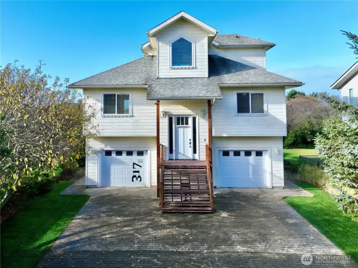 Custom Oceanfront Estate at Ocean Shores, WA! This upgraded residence was designed in 2009. Follow the driveway to the professionally landscaped grounds. 1,387 sf. Beautiful stained-glass door. Expansive 2nd story great room with door leading to the covered deck. Formal dining room. Kitchen with upgraded appliances and walk-in pantry. Full bathroom and guest bedroom off hallway. Follow the stairs to the 3rd story primary ensuite with door leading to the ocean-view deck. Walk-in closet and a full bathroom complete the private suite. 1st level utility/laundry area and 2) single door garage with shop space. Custom lighting & window coverings. Mold resistant drywall. Extra insulation. Protran generator hookup w/Honda generator. 12,000 sf lot.