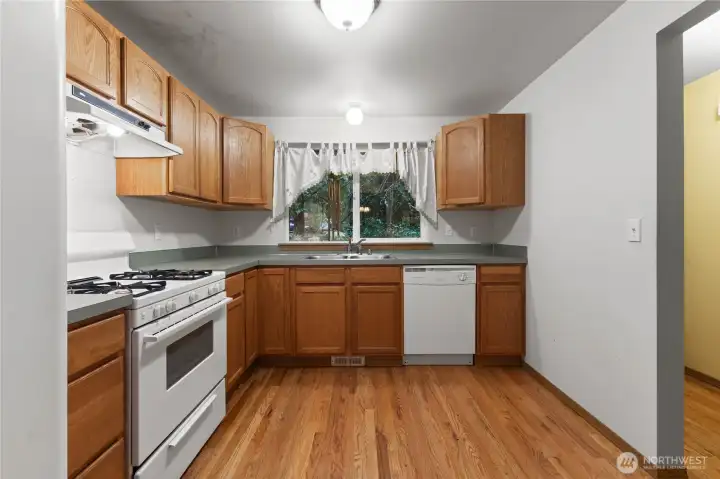 Estate Sale! Charming 3 bedroom, 2 bathroom home located in a picturesque gated community. This home features a vaulted living room with a cozy wood-burning fireplace, hardwood entry, heat pump with air conditioning, a spacious deck, and a large 2-car garage. Plus, enjoy approximately 800 sq. ft. of additional storage space beneath the home. Surrounded by beautiful natural settings with access to miles of walking trails, parks, lakes, and more. Home is sold AS IS.