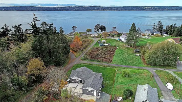 Beautiful new construction on Camano Island with 3 bedrooms, 3 baths, and spectacular west-facing sunset views. The main level offers no-step entry, a luxurious primary suite with heated tile floors, custom-tiled walk-in shower, and spacious closet. Enjoy a gourmet kitchen with Bertazzoni appliances, dedicated office, powder bath, laundry, and oversized 2-car garage. The daylight basement adds two bedrooms, a full bath, family room, and a large flex space pre-plumbed for a kitchenette and bathroom—perfect for a MIL suite, hobby room, or extra storage. Situated on a generous lot with ample parking for your RV or boat, this home combines comfort, craftsmanship, and the best of island living.