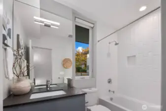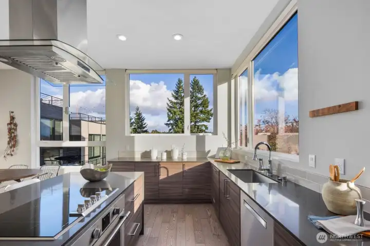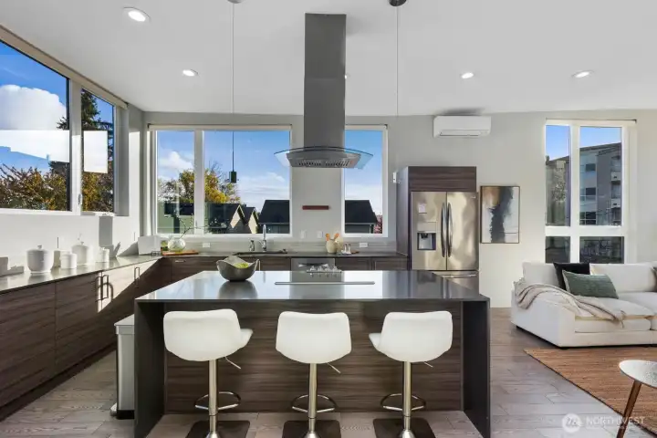 Enjoy sophisticated urban living in the heart of Wallingford. This contemporary home, located in a friendly community, has just undergone a complete exterior and interior painting, and offers modern lighting that complements its contemporary design. The gourmet kitchen features an induction stove, sleek cabinetry, and ample storage, perfect for the passionate home chef. Expansive windows flood the living space with natural light, while multiple storage rooms and California Closets–equipped walk-ins provide exceptional functionality. Enjoy terrific Seattle skyline views from the rooftop deck. Ideally situated near Gas Works Park, Green Lake, Fremont, and Wallingford’s vibrant boutiques and dining, with quick access to Hwy 99 and I-5.