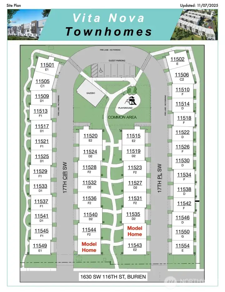 The Vita Nova Townhomes in Shorewood showcase collaboration, creativity & craftsmanship. Developed by American Dream Home Group & built by TP Home, this 43-townhomes community blends modern comfort, timeless design & everyday function. Each home offers 3-4 Beds, 2.5 Baths, approx. 1,626 to 1,916 SqFt, 2-Car Garage, covered deck. Interiors feature porcelain tile, durable LVP, quartz counters & custom cabinetry. Innovative layouts maximize light, storage & overall flow. Community amenities include an upcoming private playground + gazebo w/benches, 5 guest parking spaces + handicap spot. Minutes to Fauntleroy Ferry & Lincoln Park, and approx. 15 min drive to SeaTac Airport & Westfield Southcenter. GPS address: 1630 SW 116th St, Burien.