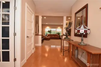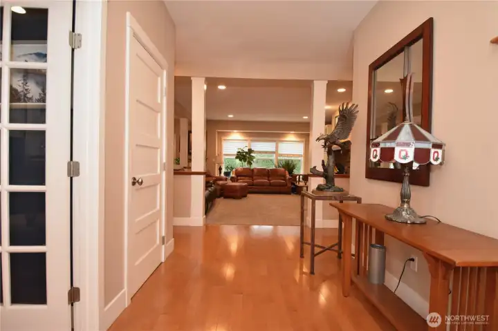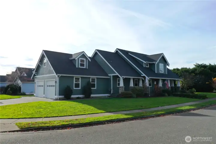 {Show Stopper in Lynden's Golf Course Community!}Custom luxury home w/quality finishes, built in cabinets, wood floors & vaulted ceilings. Newer furnace, Central AC, hot water tank, roof & exterior paint. Chef's Kitchen w/large walk in pantry, huge island, SS appliances (new ref), granite countertops, under cabinetry lighting & 2 ovens. Sitting on nearly 1/3 of an acre, the large level corner lot w/sprinklers offers plenty of space to garden, entertain, or? Wired for hot tub & BBQ connection to gas. Mature landscape easily maintained. Large patio w/fenced backyard. Covered front porch w/dramatic entry. Primary bedroom w/ensuite located on main floor w/large walk in closet. Office w/French doors. Huge bonus room w/private entry from garage.