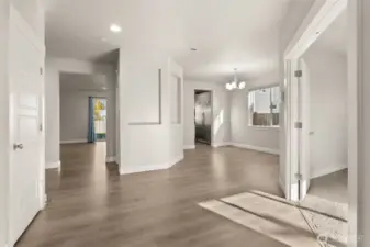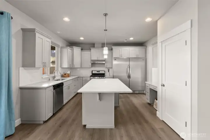 Welcome to Alder Heights where space, style, and comfort meet! This 3,031 sq ft home offers 4 bedrooms, a main-floor office, and a large bonus room. Enjoy the open-concept great room with a full height tile fireplace and custom built-ins. plus a chef's kitchen with granite counters, gas range and a 66" Gallery fridge/freezer. The primary suite features vaulted ceilings, a spa bath, and a freestanding tub. Modern upgrades include A/C, EV charger, Ring security, and fire suppression system. Fully fenced backyard with red paver walkway for jogging, covered porches, enormous 4-car garage with backup opener and Rainbird sprinklers app. No HOA/CCRs, close to Trader Joe's & Ikea. 4 years left on the builder structural warranty, MUST SEE IN PERSON!