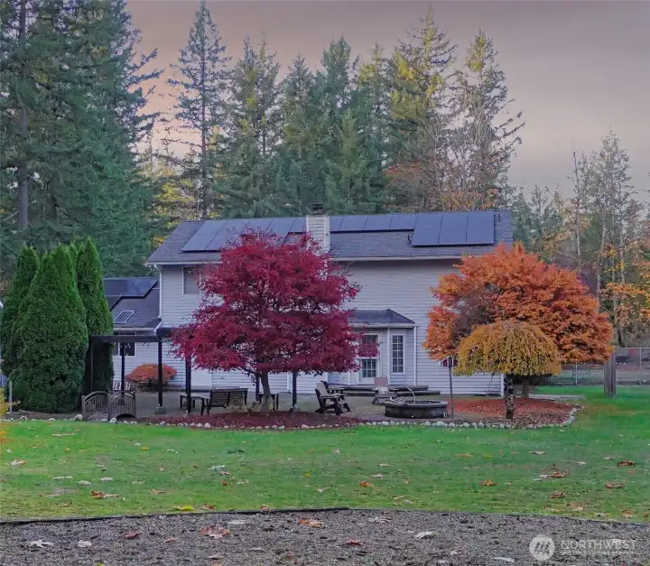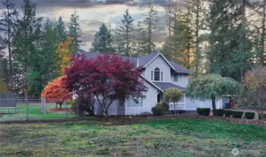 Beautiful Maple Valley home set on over an acre of park like setting property. Beautifully Updated kitchen with garden window and large counter. Four large bedrooms upstairs. 2.25 baths. Many recent updates including Solar Panels to save on your utility bill. Vaulted ceilings. Formal and Casual dining spaces. Luxurious primary suite with walk in shower and bench. Recently painted. Large family room with wet bar. Enjoy the country living and yet still be close easy drive to everything. Expansive back patio for you to enjoy the quiet beautiful space and yard. Garden space, Fruit Trees, Sport Court and RV parking. Huge dog run. Two Out buildings with electricity. Wired for a generator. Close in and yet feels private. Fabulous Tahoma Schools.