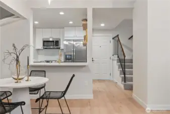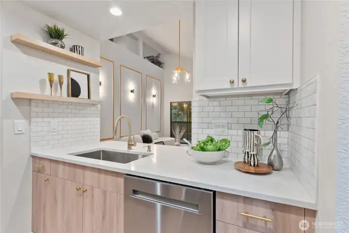 Must-See 2-bed,2-bath condo in the heart of Federal Way. The main level features a stunning new kitchen with quartz countertops, stylish tiled backsplash, stainless steel appliances, and modern soft close custom cabinetry. The bright living room boats vaulted ceilings, a cozy wood-burning fireplace with accent wall, and access to a covered balcony-perfect for relaxing or entertaining. A spacious bedroom leading to balcony and updated guest bath complete the main floor. Upstairs, enjoy a loft-style primary suite with a private bath showcasing beautiful custom tile work. Conveniently located near shopping, dining, and freeway access. Stylish, updated, and move-in ready-this won't last long. Come and see it Today.