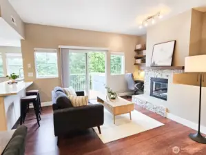 Rare opportunity in Sammamish Pointe community. This conveniently located condo boasts privacy, modern updates and abundance of natural light. No neighbors above and below, open-concept living area with high ceiling and gas fireplace, and large private balcony. Updated kitchen w/quartz countertops and a generous island - ideal for casual meals & entertaining. Large corner bedroom with thoughtfully updated walk-in closet. New engineered hardwood flooring thorough the unit. Top floor unit with a private single car garage below allows for additional storage space, plus guest parking nearby. Well-maintained HOA, covers water and sewer. Short distance to shopping, restaurants, hiking, and easy I-90 access. Pet-friendly community w/no rental cap.