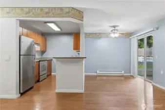 Set in the well located Brio community, this ground level 2 bed 1 bath 920 SF, pet friendly condo offers an ADA style accessible layout with wider hallways, higher outlets & an oversized bath that adds real comfort & ease. A well planned floor plan provides spacious bedrooms & living space. The dining area opens to a private backyard off the patio, a rare perk in condo living! A walk in closet in the primary bdrm & full laundry room are unique to this unit, boosting daily function & space. Enjoy 2 designated parking spots that include a rare to find deeded garage & a covered space. HOA features an outdoor pool, clubhouse & fitness center. All of this comes with being close to Alderwood Mall, fantastic dining options, transit & light rail!