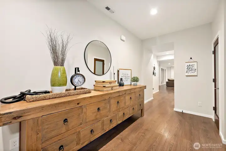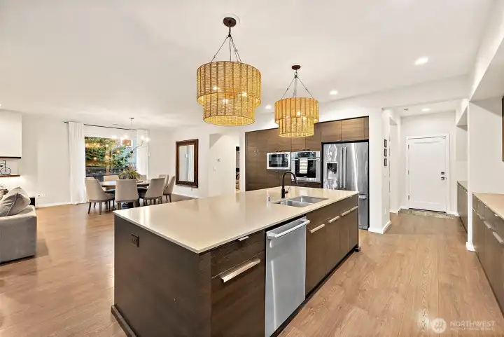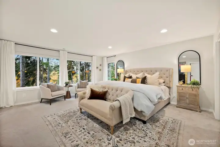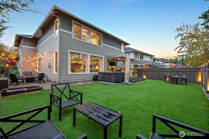 Refined luxury meets modern functionality in this exquisite 3,896 sq ft MainVue home. Thoughtfully designed w/ 4 bedrooms & 4.5 baths, it showcases hardwood floors, quartz countertops, custom built-ins, designer lighting, upgraded carpet & a grand butler's pantry for seamless entertaining. The luxurious Primary Suite offers a private retreat w/ dual WIC, a spa-inspired bath with soaking tub, and a spacious layout designed for relaxation. The signature outdoor living space features a built-in Traeger & grill, fridge, heaters & salt water hot tub - perfect for year-round enjoyment. Turf lawn & landscape lighting create a lush, low-maintenance yard. Conveniently located near Bonney Lake's shops, dining, trails & top-rated BL school district!