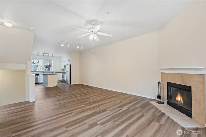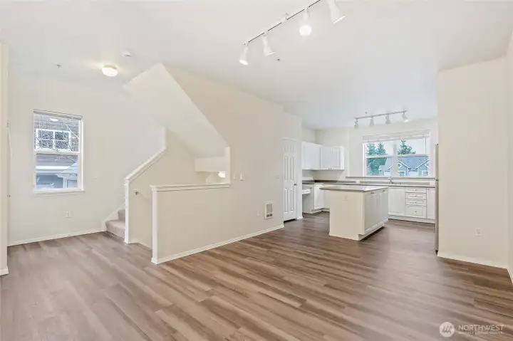 Ideally located END UNIT in the desirable Wildwood community. Step inside this 2-bed 1.75 bath home to a bright, open-concept floor plan filled w/natural light from abundant windows. Fresh interior paint, new luxury vinyl plank flooring & plush carpeting create a warm, contemporary feel throughout. Expansive kitchen is a true highlight w/generous cabinetry, spacious eating bar & plenty of room for entertaining. Upstairs, you’ll find two large bedrooms, including primary suite complete w/attached bath & large closet. Enjoy covered deck & oversized garage, providing ample space for two vehicles (+ outside parking spot) & additional storage. Community amenities include pool, spa, fitness center & cabana. No rental cap & fully paid assessment!