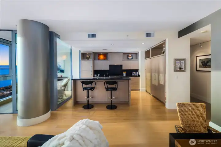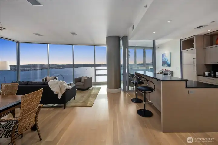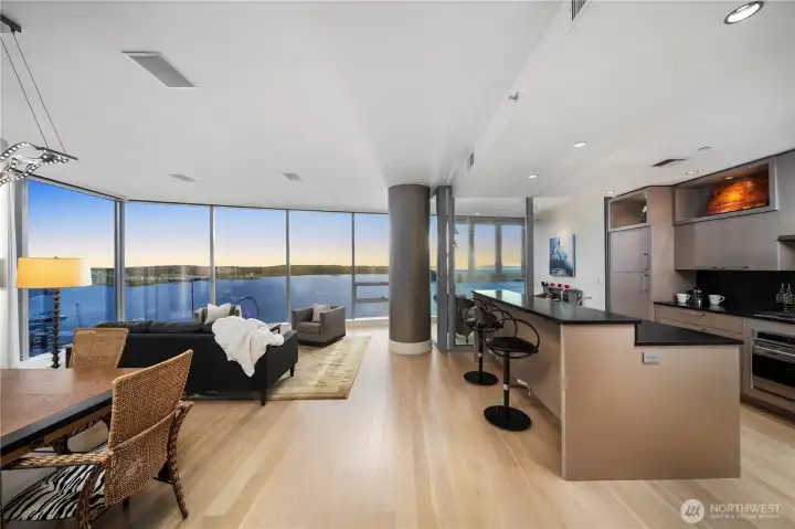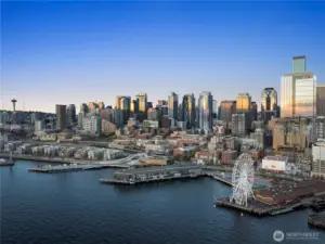 Unobstructed views while perched high above Seattle’s iconic waterfront, this 19th-floor residence captures sweeping views of Eliott Bay, Pike Place Market, Mt. Rainier to the South & the majestic Olympic Mountains. Floor-to-ceiling windows bathe the home in natural light, while the open-concept design blends sophistication with comfort. The sleek chef’s kitchen, spa-inspired bath, & refined finishes throughout create an atmosphere of timeless luxury. Enjoy the exclusivity of full-service concierge living with access to 3 Rooftop terraces, BBQ, gym, yoga, boardroom, & sky lounge. While being steps away from restaurants, stadiums, arts, retail, light rail, & everything Seattle has to offer.