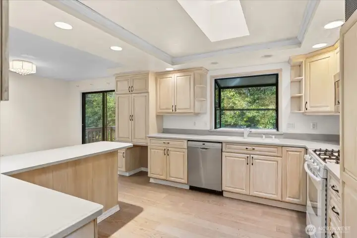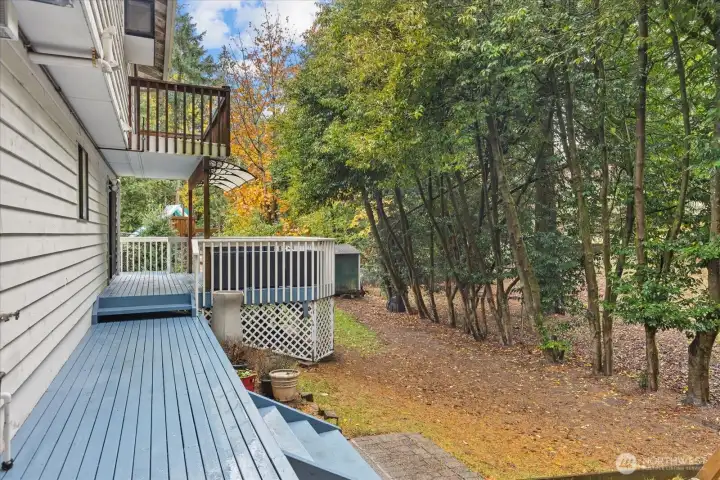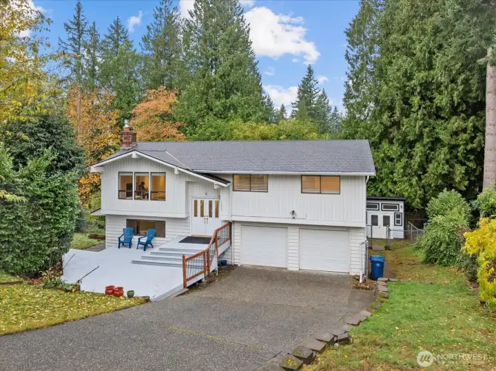 Rare opportunity in the sought-after Bridle Trails community! Bright, open great room with abundant natural light & spacious kitchen featuring gas range, sub-zero fridge, and eating bar. Lower level offers a separate entry, large family room, full bath, and second kitchen with slider to an entertainment-sized deck, ideal as an ADU for multi-generational living or rental income. Attached two-car garage with ample storage. Fully fenced backyard with storage shed and 12x12 insulated, heated office - perfect for WFH. Prime location on a quiet dead-end street, just steps to Taylor Fields Park and Bridle Trails State Park, and minutes to vibrant downtown Kirkland, Bellevue, and top-rated LWSD schools! One of the best neighborhoods in Kirkland!