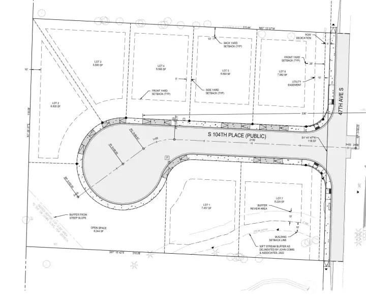 Exceptional builder opportunity with approved permits for 7 single-family homes on three parcels totaling over an acre of land. Planned cul-de-sac community with minimum 5,000 SF lots. Sewer in street, gas and water on property—utilities ready for construction. Convenient Tukwila location near I-5, I-405, Southcenter, and Sea-Tac Airport. Just 15 minutes south of Seattle and Bellevue, this prime suburb offers a growing tech presence and strong demand for single-family housing. A rare shovel-ready project in a high-growth, centrally located neighborhood—ready to build now! Buyers to verify zoning and development standards for potential increased density or alternative housing opportunities.