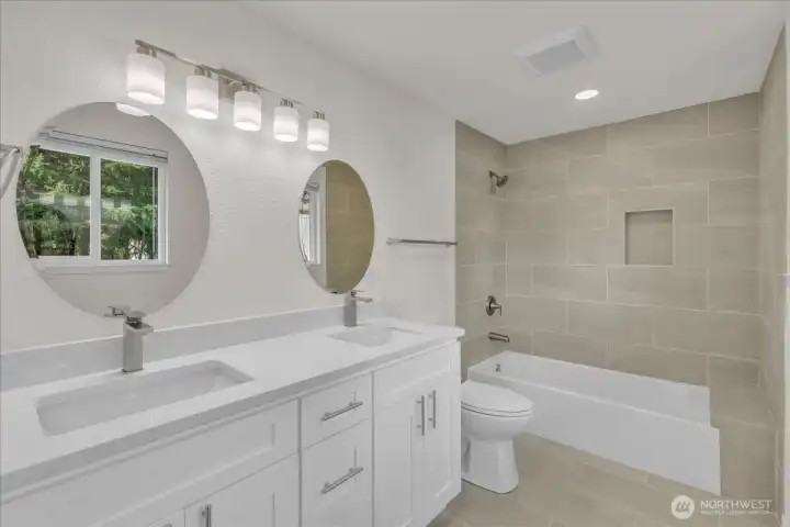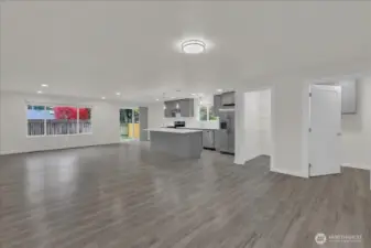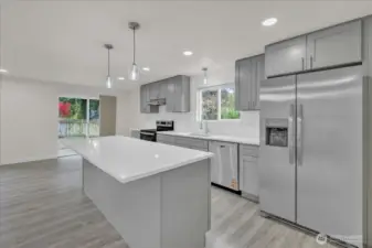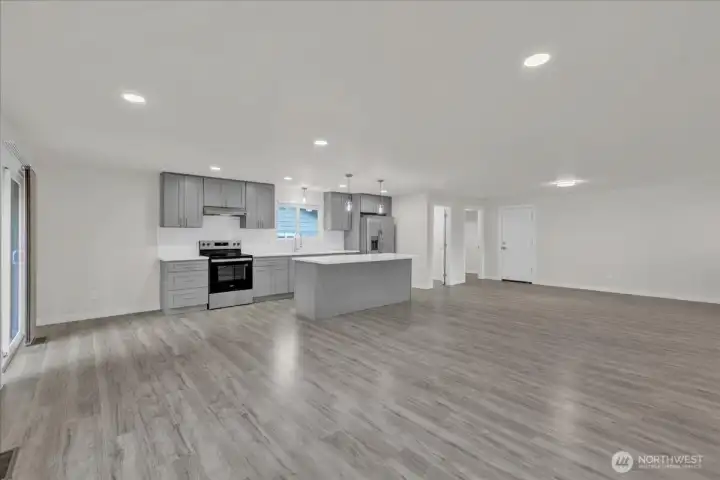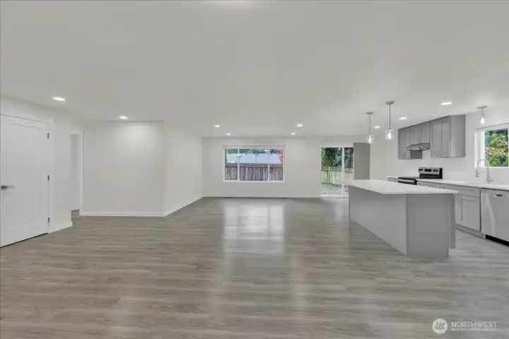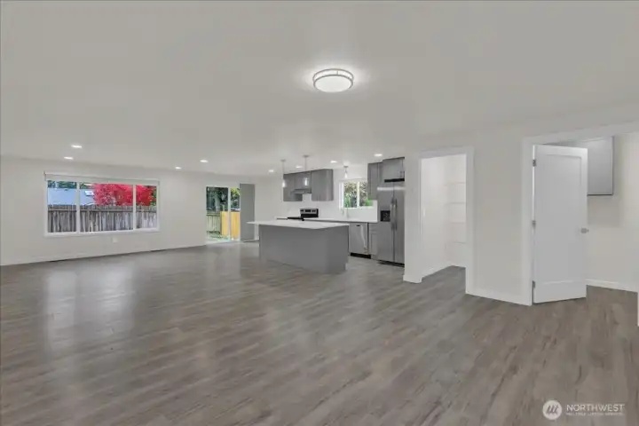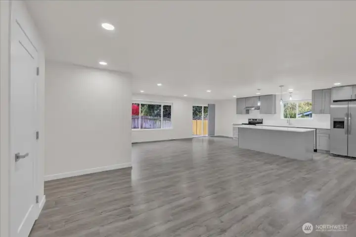 Fully remodeled 4-bed, 2-bath rambler on a quiet cul-de-sac in central Lacey. Nearly every surface updated—new roof, windows, LVP flooring, tile bathrooms, paint inside and out, and much more. Open concept living with vaulted ceilings and modern finishes. Stunning new kitchen with stainless appliances, walk-in pantry, and generous counter space. Primary suite with private full bath. Separate laundry room. Fully fenced backyard with patio and room to relax or garden. Two-car garage plus extra parking. Too many upgrades to list—move-in ready!