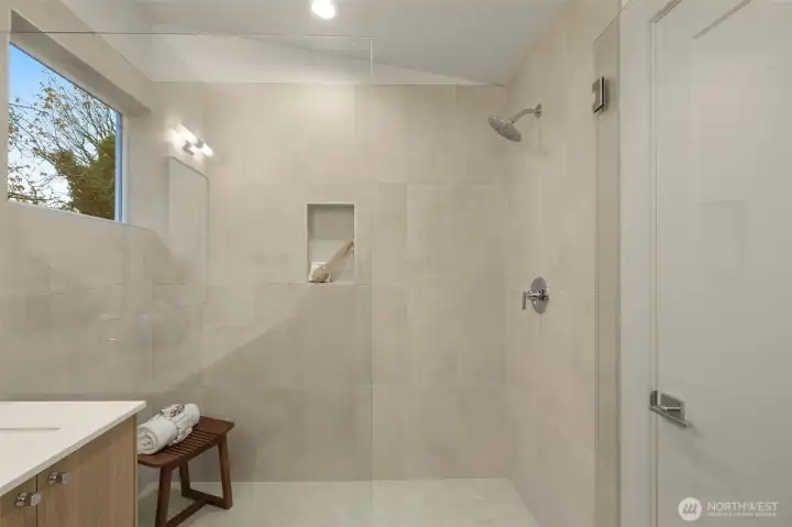 Your primary suite, a spa-inspired retreat with ample storage & a large full tile surround shower