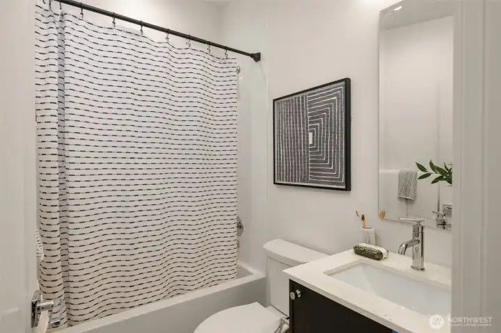 Full bed & bath on ground level creates a perfect guest suite for long term visitors, overnight guests, or use it as a flex space- home gym, office, or hobby room