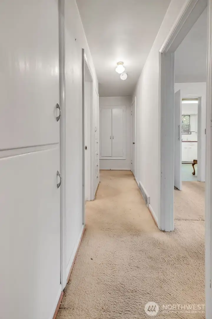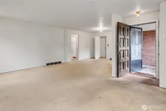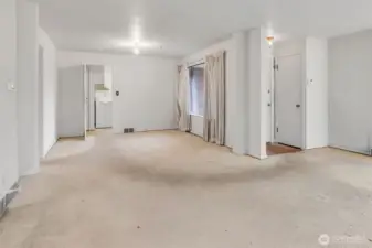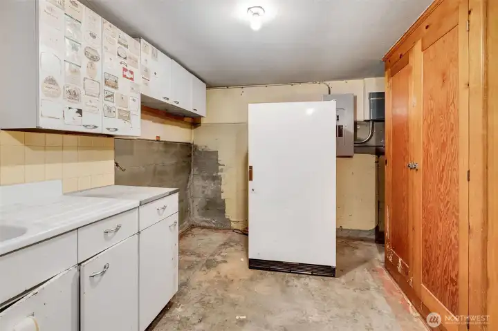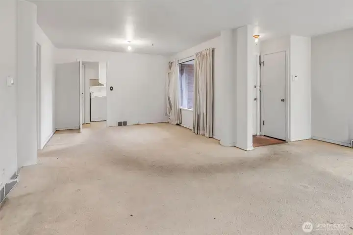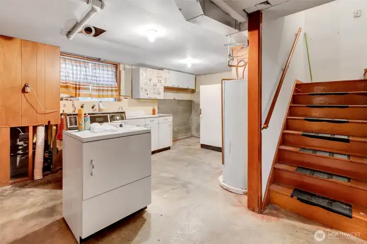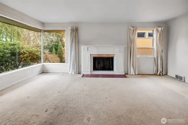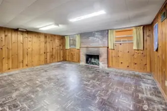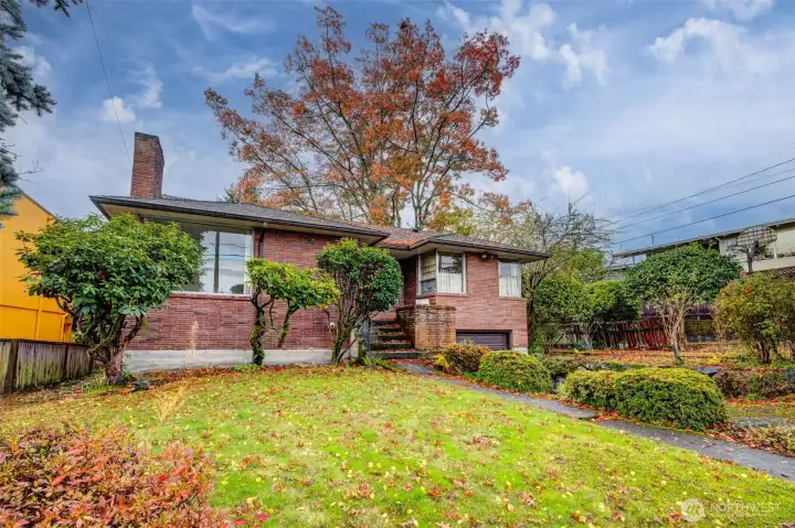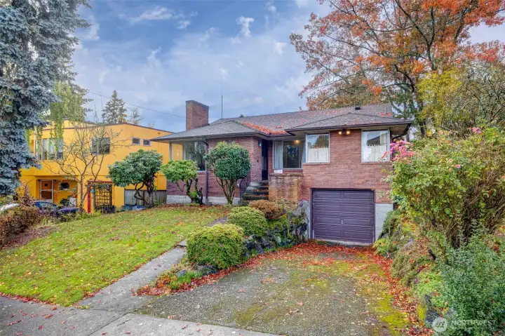 Classic Mid-Century Design Awaits! This 2-bedroom, mid-century gem is your ticket to instant equity and a custom-designed future. Step inside a home with fantastic bones and classic mid-century architectural character. The bright and sunny living room is anchored by a stunning fireplace, complemented by the warmth of original hardwood floors. The dining room is flooded with natural light that begs for modern flair. The lower level offers a spacious rec room featuring a second fireplace, and opportunity for additional bedrooms. Direct access to the backyard means outdoor potential is ready to be unlocked. Positioned for convenience, you'll enjoy great proximity to Lake Washington, biking trails, and parks nearby.