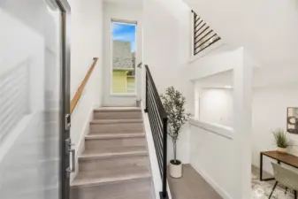 Welcome to a modern Greenlake townhome conveniently located in the heart of the North Greenlake neighborhood near the lake, shopping, restaurants & I-5 but also uniquely nestled just off the streets & partially fenced-in for privacy/security. You’ll appreciate the spacious rooftop deck w/sunset views & partial lake/mountain views, the gourmet kitchen featuring Bertazzoni appliances, primary suite on upper level with walk-through closet & dual vanity sinks, a 2nd bedroom on the lower lever, PLUS a flex area that is a perfect home office. Also featuring an easily accessible deeded parking space just steps from your front door & all lighting has been updated with Kasa Smart Wi-Fi to easily control lighting/temp from your app (even remotely).