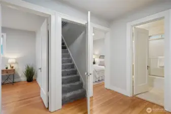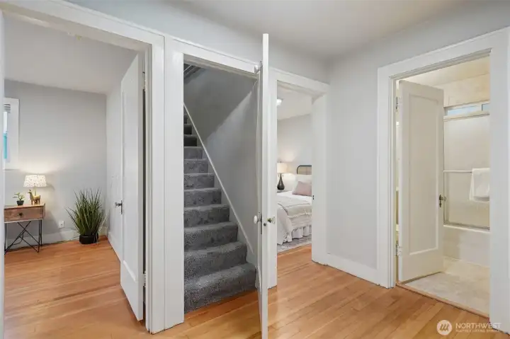 Welcome home to this well kept house brimming with period charm. Large lot with huge fenced yard, 768 square foot 2 car detached garage and workshop, and storage shed is all the space for your projects, boat storage or building a second house. Lot is approximately 200 feet deep and 42 feet wide. Surprisingly spacious with storage, 2 bedrooms on main floor, full bath, separate laundry room and upstairs bonus/loft space. Quiet street paralleling the off street Water Flume Line trail for walking and biking.