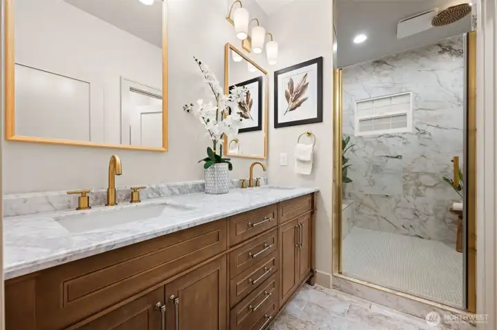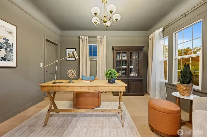 Craftsman charm meets modern elegance in this fully updated home. Cozy FP warms the airy lvg rm upon entry, flowing to the dining area w original coffered ceilings, timeless wainscoting details & elegant fixtures. Kitchen blends style & function w new cabinetry, stone countertops gas range w double oven & ample storage. Chic primary suite feat a walk-in closet & lux spa-like bath w a dreamy, oversized shower. Full BA & moody office or optional 5th bed complete main level. Downstairs offers the perfect relaxation space w a generous bonus rm & wet bar, plus 3 beds & full BA. New roof, windows, electrical, plumbing, mini splits, hot water heater, & more—request the full list! Ideally located on a quiet, tree-lined street & ready to call home!